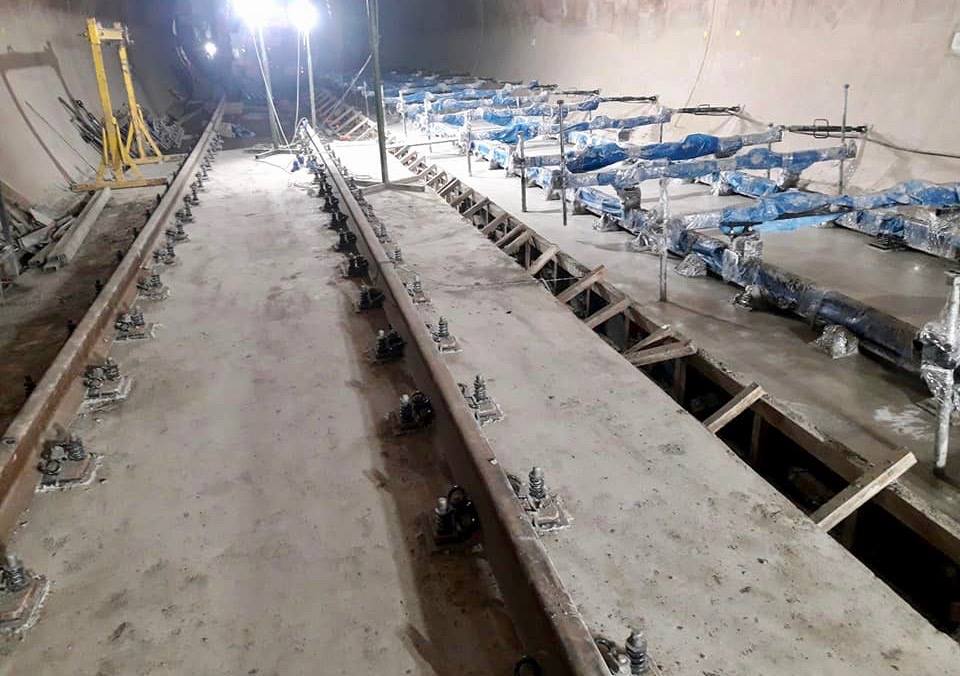 Linea 2 - Montaje de rieles y vía en placa en tunel